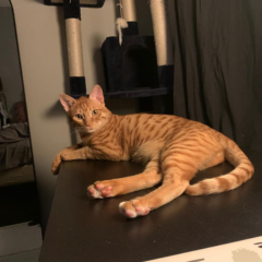 Owner: Natalie Hunter Community: Al Raha Gardens “Cairo came into our lives unexpectedly, and within a day of fostering him we knew he was here to stay. Found abandoned in Al Raha Gardens, he joined us through the AWAD Community Cat Care Program (CCCP). Shy at first, Cairo quickly became part of the family, bonding with our cat, taking our kittens under his wing, and even learning to get along with our lively dog. He’s the biggest, fluffiest, most laid-back “lion” of a cat, and his presence has enriched our lives beyond measure. We can’t imagine home without his gorgeous, grumpy face. Welcoming him into our home hasn’t just improved his life, it has enriched ours too.”